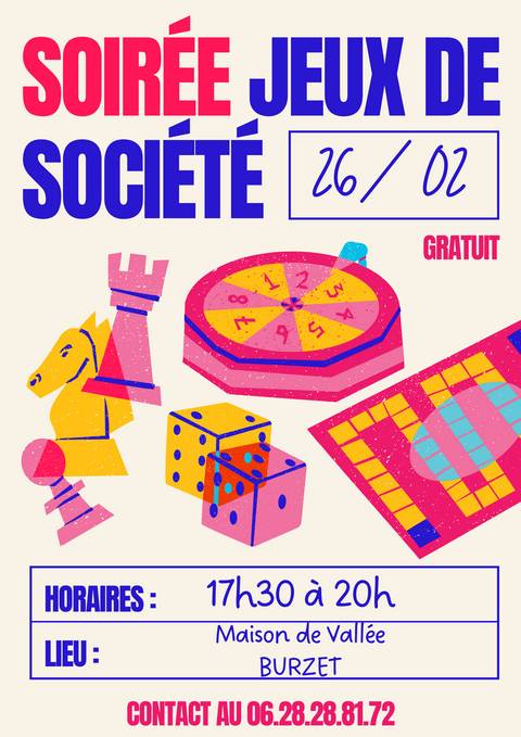 Rendez-vous le jeudi 26 février de 17h30 à 20h à la Maison de Vallée pour la prochaine soirée jeux de société !