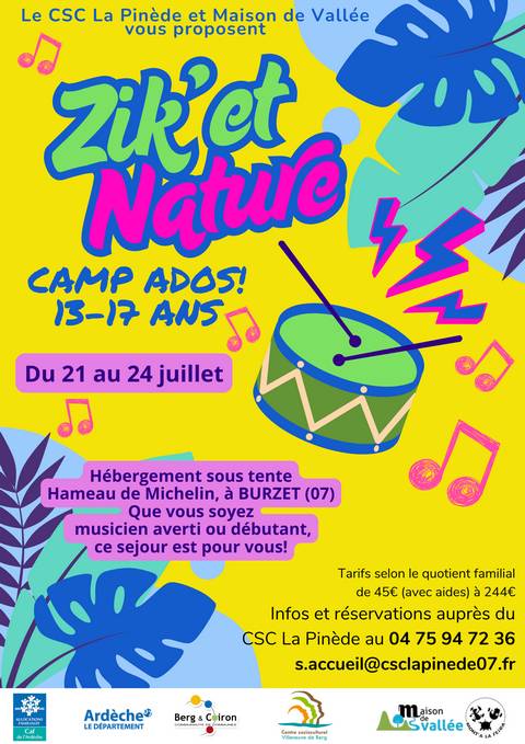 Le camp est ouvert à toutes et tous, dans un cadre naturel superbe, en co-organisation avec le centre socio-culturel La Pinède à Villeneuve de Berg.