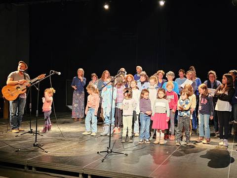 Le 7 décembre dernier, la vallée avait rendez-vous avec sa propre voix. Entre 160 et 180 personnes ont rempli la salle de spectacle de Meyras, venues écouter et partager la restitution du projet social 2026-2029. Sur scène, près de 35 artistes d’un soir – enfants et adultes mêlés – ont fait résonner avec Baptiste Dupré les chansons nées ici, tissées de mots recueillis lors de rencontres avec les habitant·e·s.