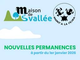 À partir du 1er janvier, la Maison de Vallée est ouverte au public tous les mardis, mercredis et jeudis, de 9h à 12h.