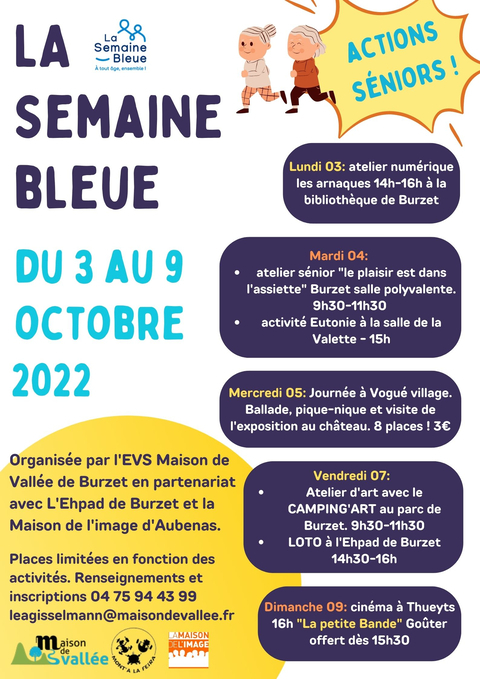 Du 3 au 9 octobre 2022, laSemaine Bleuearrive dans la vallée avec plein d'activités pour les séniors !