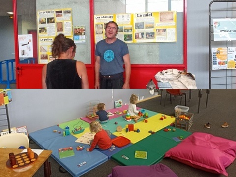 Que pouvons-nous retenir de cette journée : Fred et son stand rucher école riche en couleurs, Isabelle et les profs de musique pour une présentation de l'école de musique, un espace de jeux pour les enfants pour le café des familles, un stand "conseiller numérique" pour faire connaître les ateliers numériques, et des salariés et bénévoles motivés pour présenter les activités de la Maison de Vallée.