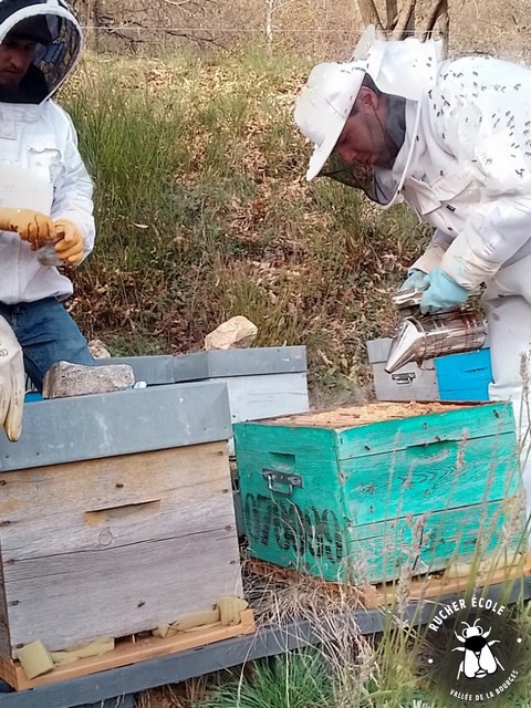Chaque stagiaire a pu suivre, au fil de l'année et des saisons, deux colonies d'abeilles au sein du rucher : fabrication et entretien de cadres de ruche, observation, nourrissement et protection sanitaire, élevage de reines, production d'essaims, récoltes du miel, mises en pot.