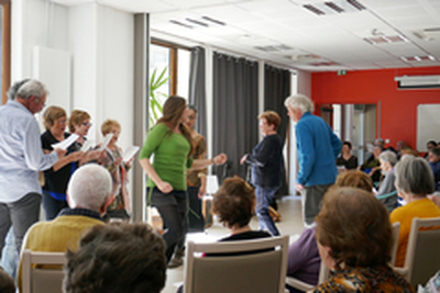 Parmi une soixantaine de personnes, résidents et spectateurs, certains se sont exprimés en chansons, d’autres ont participé aux danses.