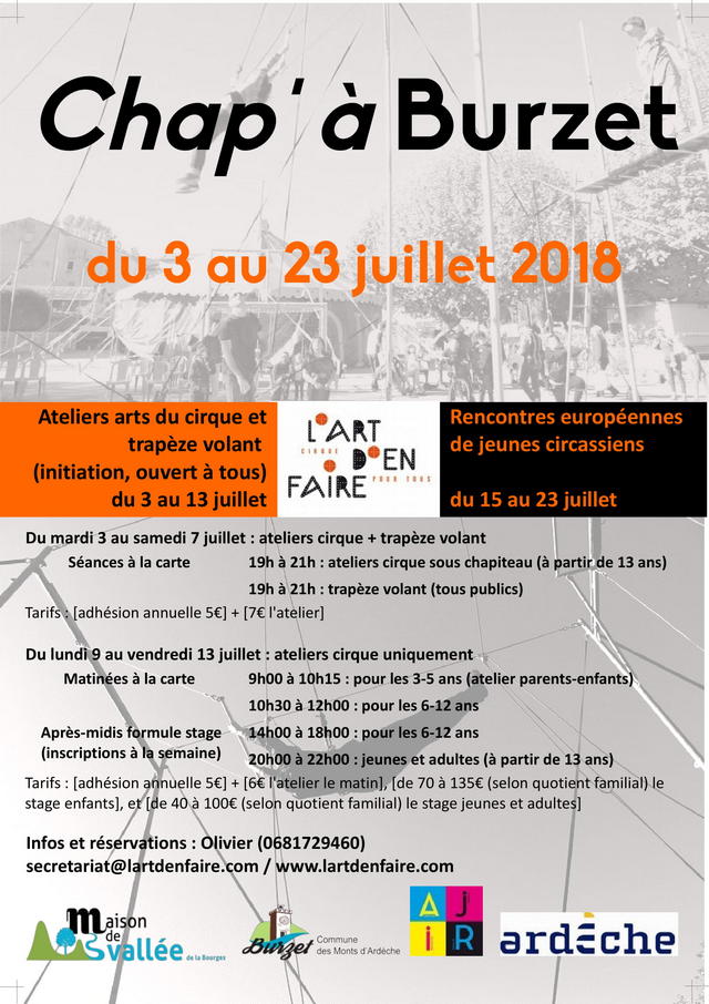 Le vide grenier de l'Association des Parents d'élèves de l'école publique de Burzet aura lieu dimanche 23 septembre de 9h00 à 17h00 à Saint Pierre de Colombier. Buvette et restauration sur place. Emplacements prix libre/Inscription : 06 12 24 12 94 our par Cette adresse e-mail est protégée contre les robots spammeurs. Vous devez activer le JavaScript pour la visualiser.