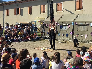 Par un superbe temps ensoleillé, un public nombreux est venu assister au festival «Faut Qu'Ça Bourges !, la Petite édition», à l'espace Astier de Burzet. Les ateliers de cirque (initiation au trapèze), les numéros de portée acrobatique (notre photo) et de magiciens ont émerveillé l'après-midi des petits et grands. Le concert de La Gran Ursula a conclu le festival qui, d'année en année, ravit les habitants de la vallée et d'ailleurs.