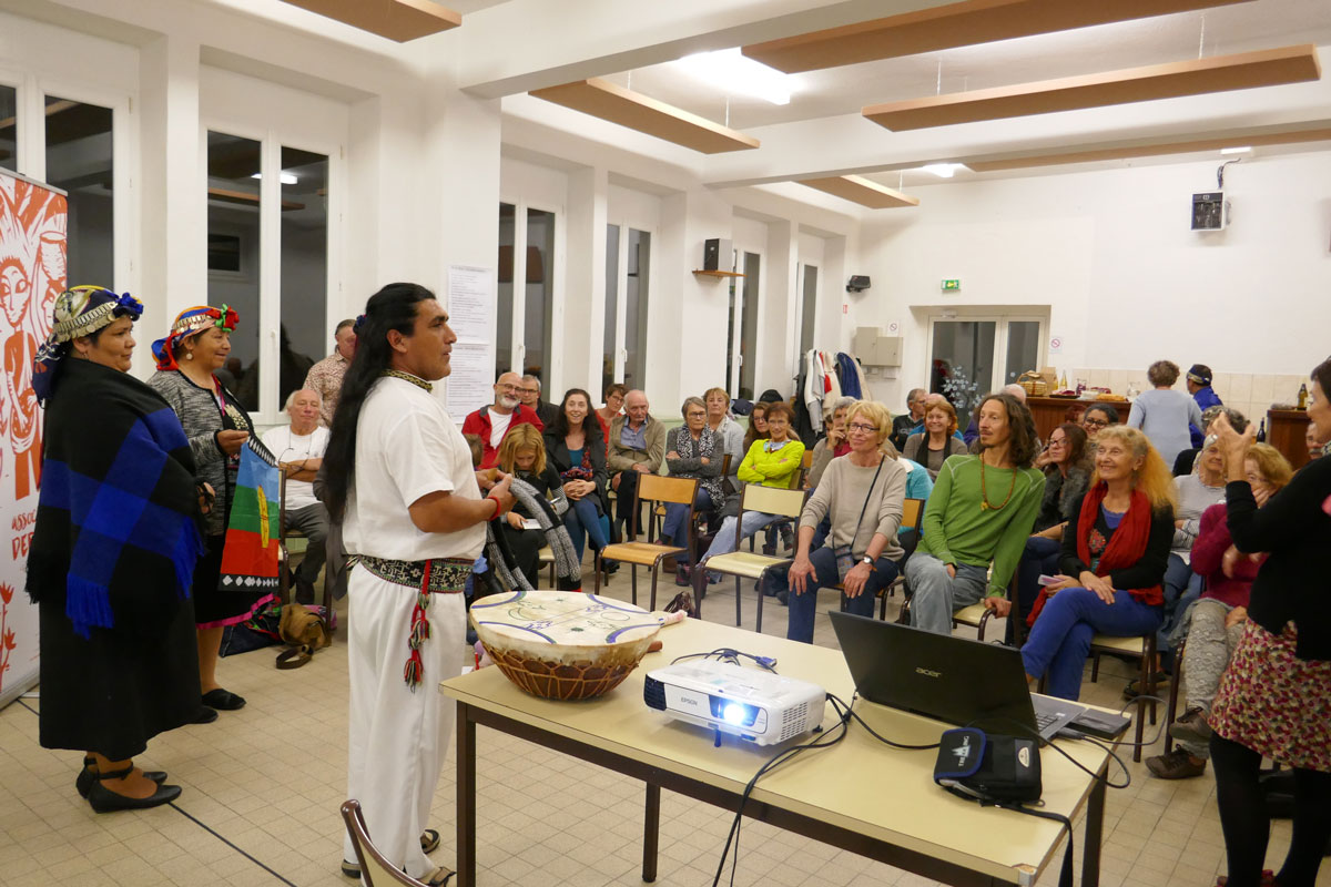 En tournée pour la première fois en France, quatre Mapuches, « Peuple de la Terre » du Chili, nous raconteront leur histoire, nous parleront de leur culture, mais aussi de leur combat pour le respect de leur identité, la restitution de leurs terres et leur droit à l’autodétermination. La Maison de Vallée, les recevra le vendredi 19 octobre à 20h, à la salle des fêtes de Saint-Pierre-de-Colombier. Présentation de la culture mapuche, échanges, auberge espagnole et scène ouverte pour tout ceux et celles qui souhaiteraient partager en jouant un morceau de musique ou en chantant une chanson.
