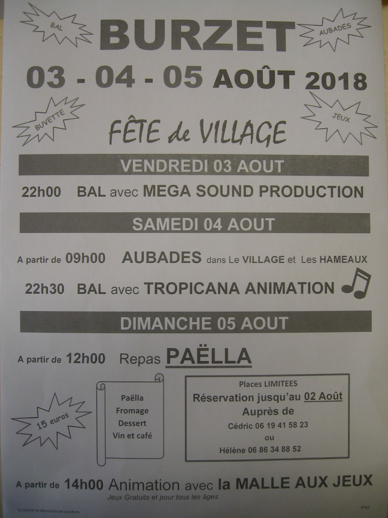 Le Comité des Fêtes de Burzet vous propose 3 jours de festivités avec la Fête du Village, 4 - 5 et 6 août 2017 au Parc Municipal :