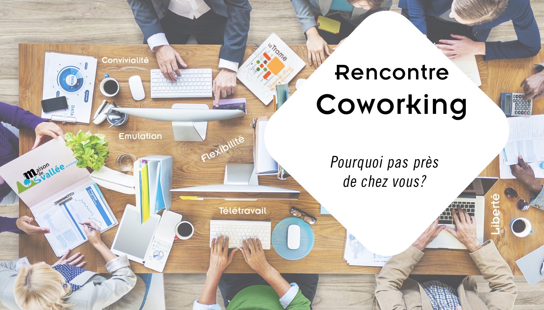 Vous ne souhaitez plus travailler seul chez vous, vous chercher un lieu de partage et d'enrichissement professionnel, le jeudi 4 octobre à 19h à la salle des fête de St Pierre de Colombier, le réseau la Trame et la Maison de Vallée organise un temps de rencontre pour vous permettre d'échanger et de partager autour de vos besoins.