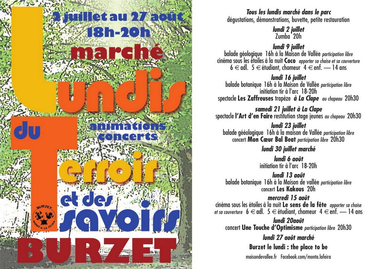 Cette année encore, les lundis du terroir et des savoirs sont un succès indéniable : les visiteurs, producteurs, artisans et artistes sont venus nombreux pendant le mois de juillet qui a été riche en animations. Découvrez le programme d'août qui ravira toute la famille : balades, cinéma en plein air et concert sont prévus ce mois-ci !
